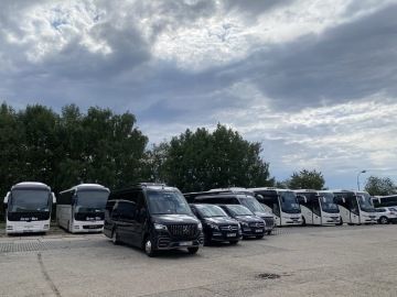 Naše vozidla splňují nejpřísnější evropské normy Euro 5 a Euro 6. Přepravu nabízíme autobusy pro 28, 37, 49, 55, 59 a 83 cestujících, minibusy pro 6, 7, 8 a 20 osob a limuzínami pro 1-3 osoby.